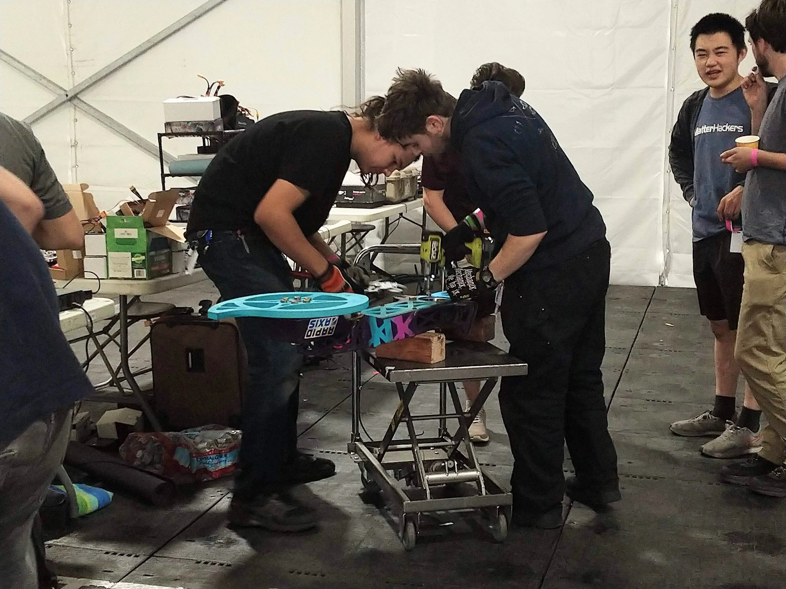Back in 2020, I dipped my toes into combat robotics for the first time with small 3d printed 1lb combat robots I made and tested(safely) in my living room. After finding a few robot folks local to me applying to Battlebots, the TV show one, with a new design called Horizon, I hopped right on board. Unfortunately the design was declined for 2021, but we did end up lending a hand with Gigabyte, another fairly local team. In 2022 however, Horizon got in, we built the robot, and had a great time. My focus on both teams was mixed, focusing more on electronics and some mechanical work on Gigabyte but working with all the systems on Horizon, from electronics and software to maintaining and repairing the frame and other mechanical components.